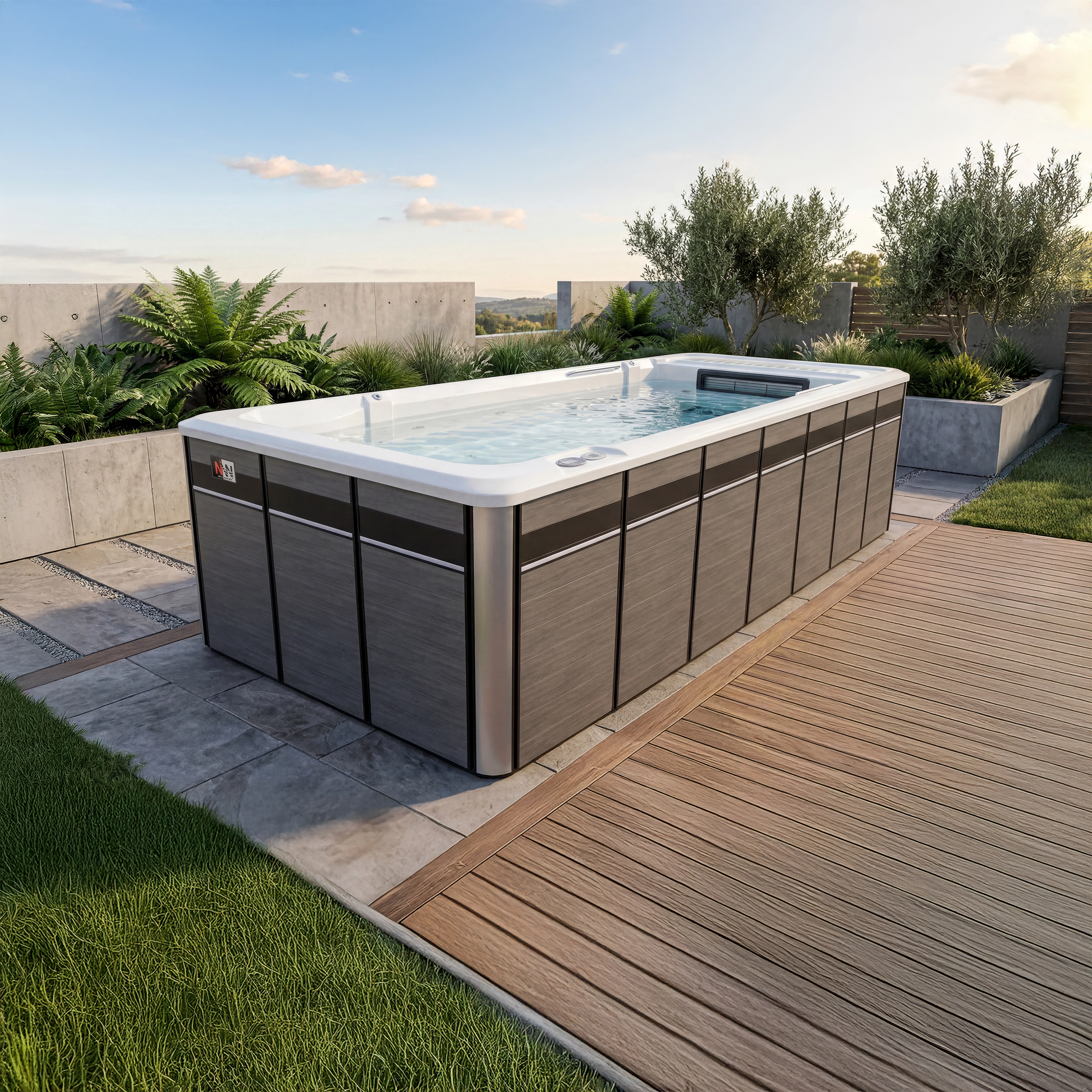 Le spa Slovika de North Wave Spa est un spa de nage monobassin conçu pour combiner nage à contre-courant et hydromassage dans un format compact. Son agencement permet une utilisation simple et fluide, sans séparation entre les fonctions.