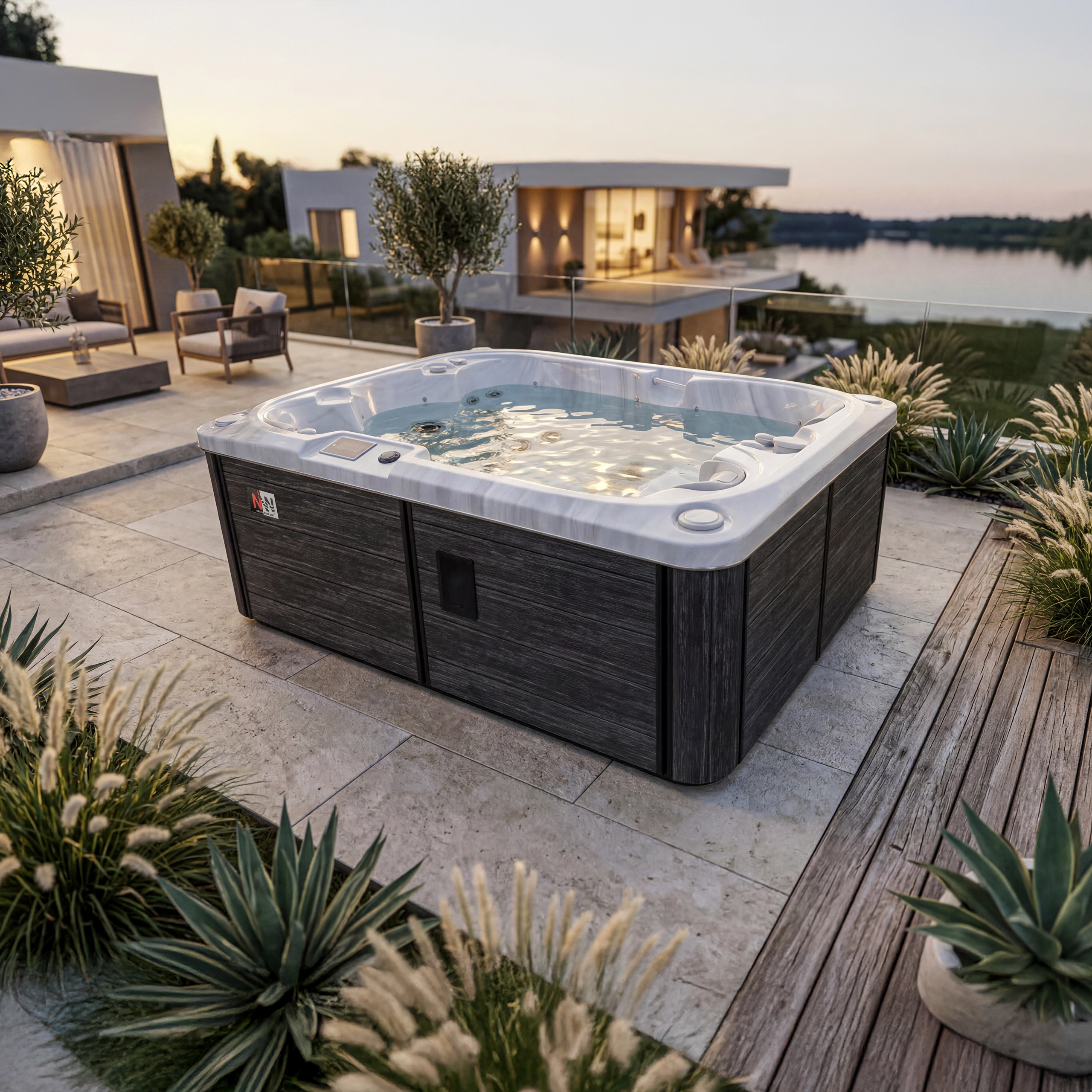 Sa coque en acrylique Lucite® made in USA offre une excellente durabilité et une finition haut de gamme, résistante dans le temps. L’ensemble est conçu pour proposer un spa fiable, performant et parfaitement adapté à un usage régulier.